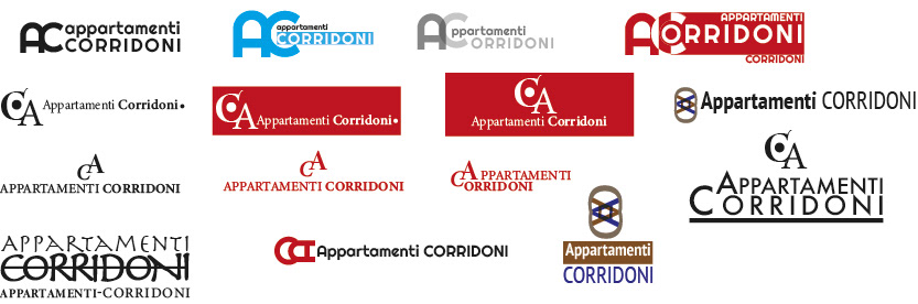 Le prime varianti per la scelta del marchio - logo di appartamenti Corridoni realizzati con Ai.